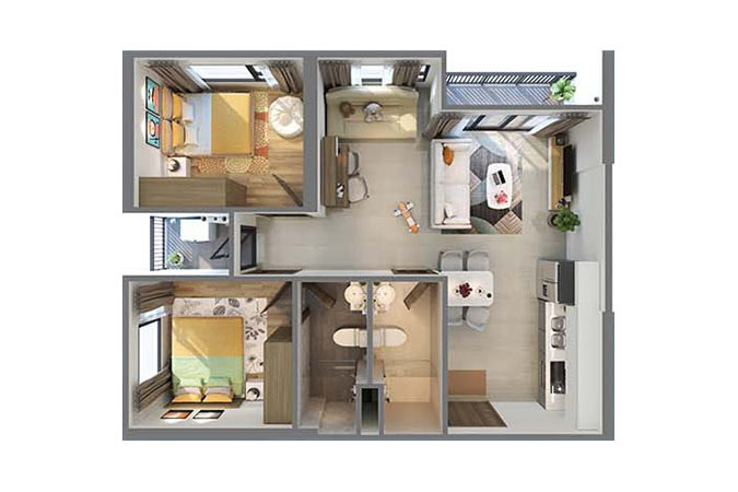 Căn 2 ngủ | Căn 2 ngủ | 69m2