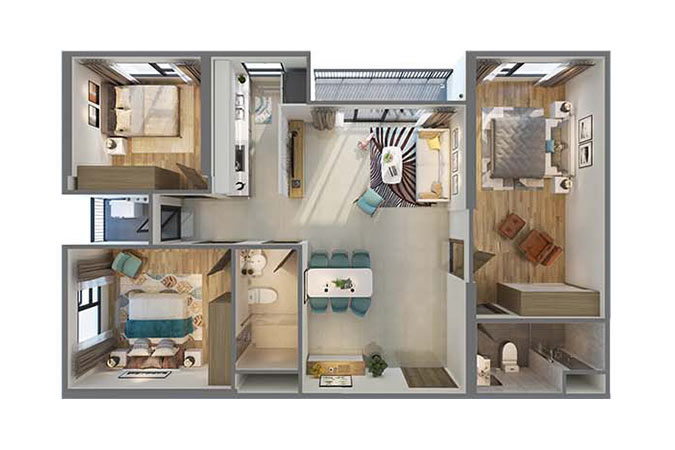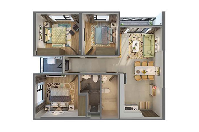 Căn 3 ngủ | 82m2
