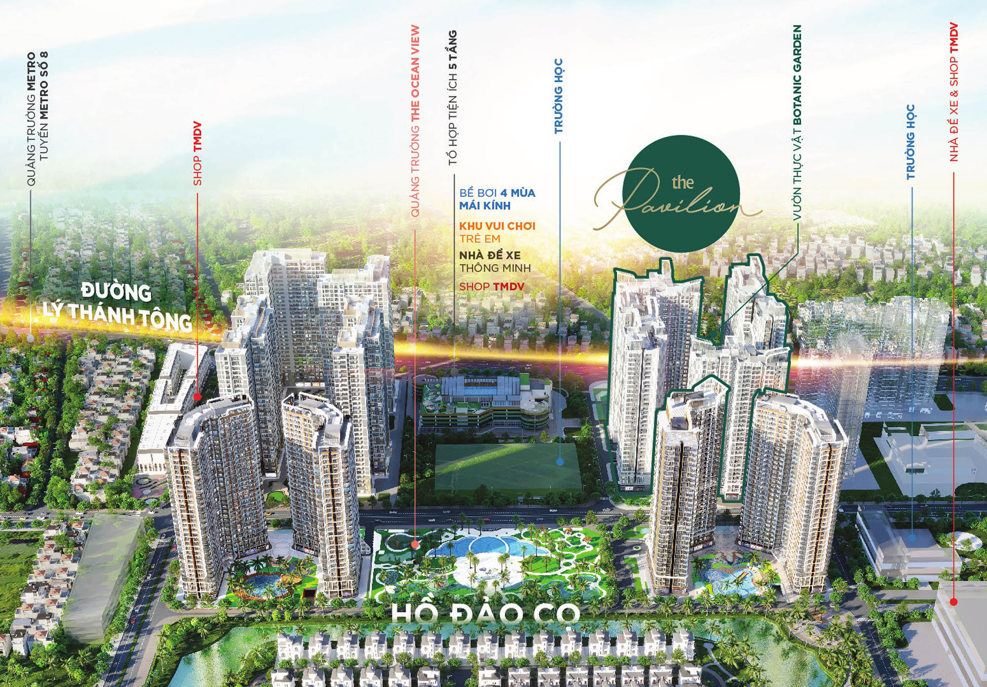 • The Pavilion: 4 tòa căn hộ phong cách Singapore, đánh số từ P1 đến P4.