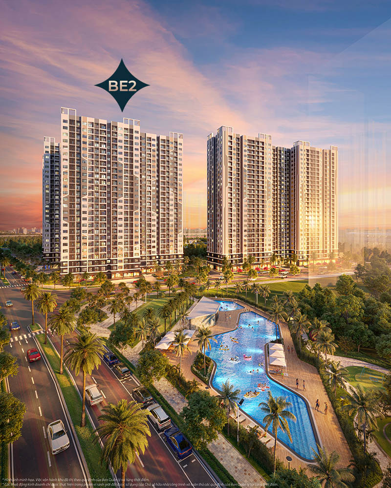 Tòa BE2 là tòa căn hộ có số lượng căn hộ chỉ 400 căn hộ với chiều cao 25 tầng, vì vậy mà đây là tòa có mật độ căn hộ và dân số thấp nhất tại dự án. Các căn hộ được thiết kế theo phong cách hiện đại với lối thiết kế tối ưu hóa công năng sử dụng, mọi không gian bên trong căn hộ đều thoáng và sáng với các mảng cửa sổ kính và ban công rộng lớn.
