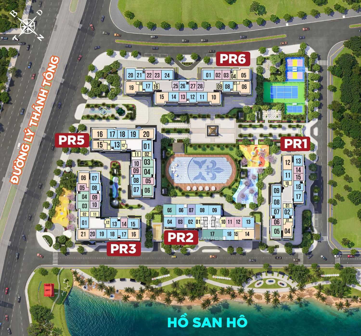 Lợi thế tiếp cận 2 mặt với Công viên hồ San Hô và Công viên tiện ích nội khu, đa số các căn hộ tòa PR2 đều sở hữu tầm nhìn toàn cảnh bao trọn không gian cây xanh, hồ nước và bể bơi vô cùng ấn tượng và đẹp mắt. Có thể nói tòa PR2 là tòa căn hộ có vị trí và tầm view 360 độ đẹp nhất phân khu The Paris.
